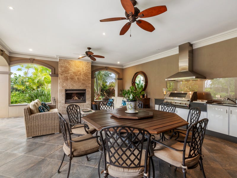The garage accommodates three cars, while still offering space for storage. And the home works to be energy efficient with five separate air-conditioners and ceiling fans for each bedroom, plus a 90,000L underground rainwater tank that provides an automatic irrigation system to the grounds.