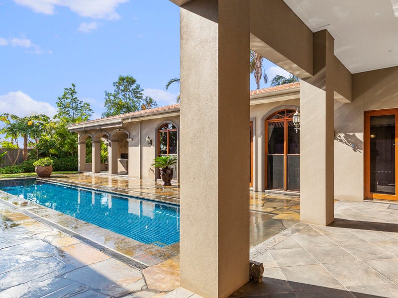 So, what else will $5 million get you? Well, in addition to the five bedrooms and eight bathrooms, you’ll also get a formal lounge and dining room, a kitchen with a butler’s pantry, a home theatre, a library, two laundries, a lift and an undercover outdoor area, complete with 15m solar-heated lap pool and landscaped gardens.