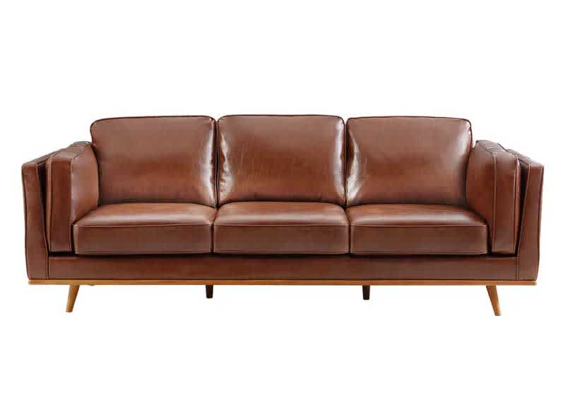 Getting a leather couch at an affordable price is rare, but you can often find vegan leather couches for cheap, like this 3-Seater lounge by Rothbury Home ($1,349). The soft touch PU leather looks and feels similar to real leather, but is also easy to clean and a lot less expensive. The sofa features a wood frame and a high back for added comfort, plus high-density foam for support.