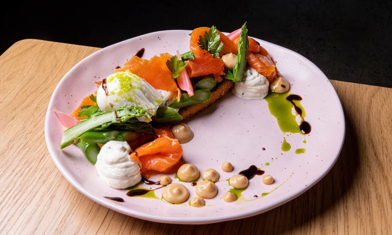 Some of our favourite brekky dishes are the french toast doughnut with blood orange compressed peaches, eggs in arrabiata with njuda butter and the porchetta toastie with crushed broccoli and pecorino cheese.
