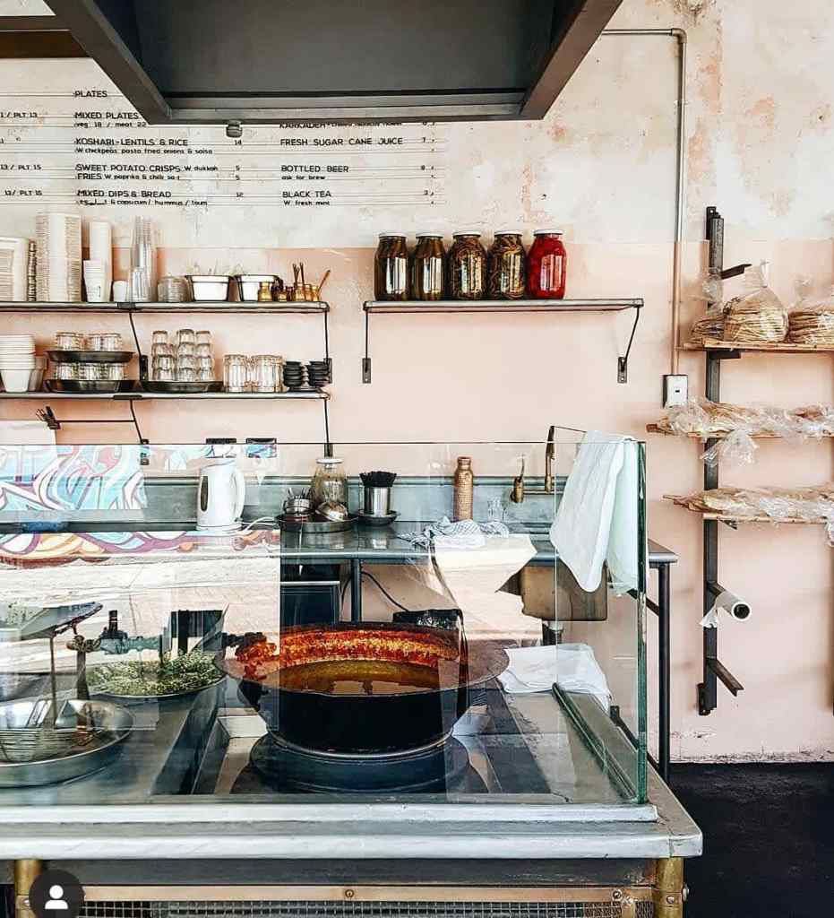 The falafels here are freshly made every order, and well worth the few minutes wait for a seat. Inside, there are a few tall tables, and out the back, you will find a garden-style seating area, with tables and chairs. If there’s no room, you can always pull up a milk crate on the sidewalk, where there are a few tables. The rest of the menu is filled with delicious pickles, meats on a stick, pita bread, crispy fries, and roast eggplant. It’s one of the best places to grab a tasty cheap eat here.