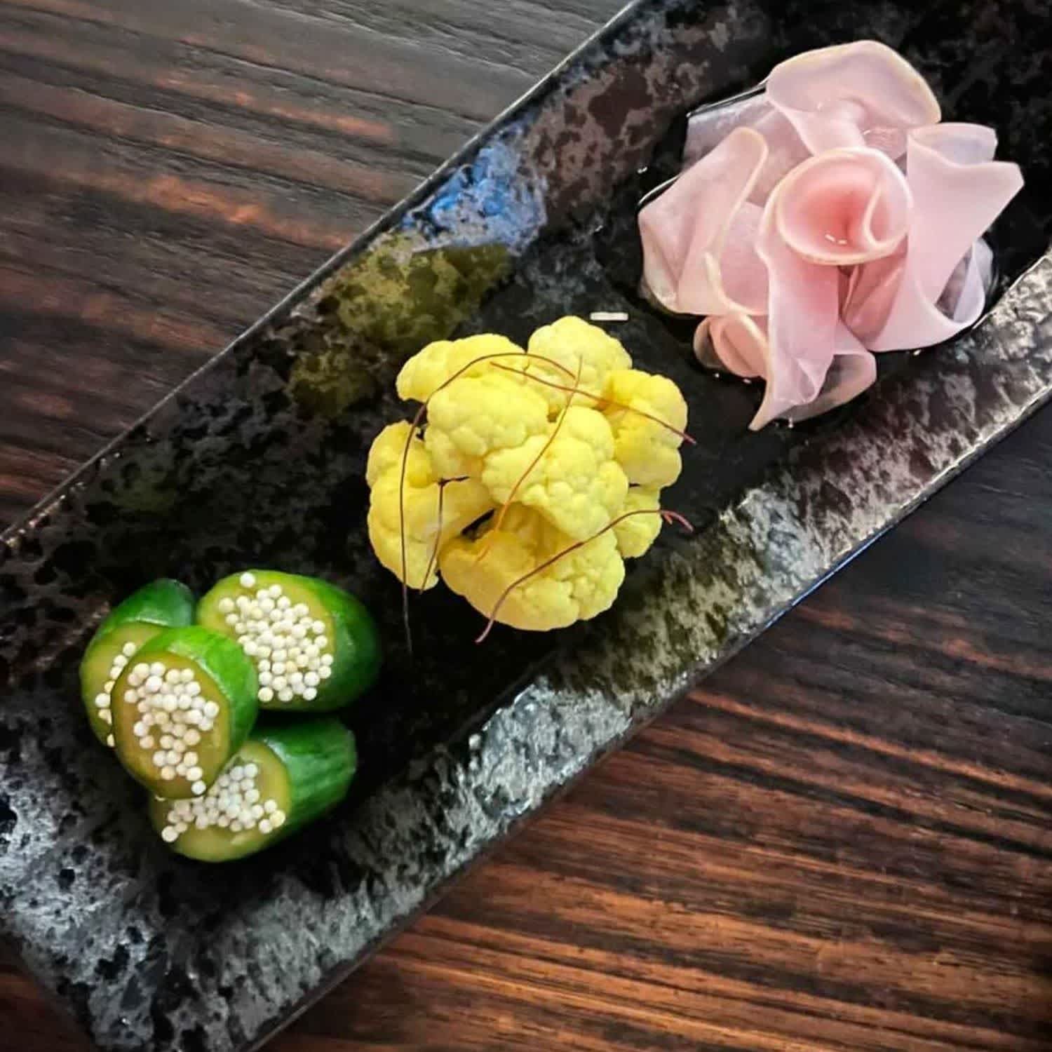 Akaiito has a bit of a brooding, sexy vibe to it, with black marble surfaces, dark granite flooring, plus grey banquettes and a neon red-thread light installation that twists across the ceiling of the dining room and all the way down into the underground bar. Akaiito’s Underground Bar & Eatery promotes casual dining in a speakeasy setting, while their ground-level restaurant offers a seasonal chef’s menu, with a Robatayaki grill and sushi fine-dining experience. For drinking, they have a creative cocktail list, a great whisky selection and a vast range of sakes.