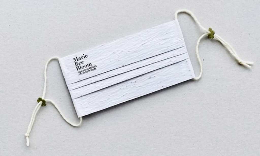 She also states that the seeded paper offers as much protection as other homemade masks, and takes it all the way by using biodegradable ink for the logo and sheep’s wool for the ear loops.