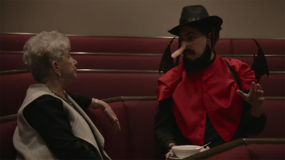 In perhaps the most offensive skit the film produces, Baron Cohen dresses in a horrible anti-Semitic outfit and goes to a synagogue in Marietta, Georgia to “wait for the next mass shooting.”