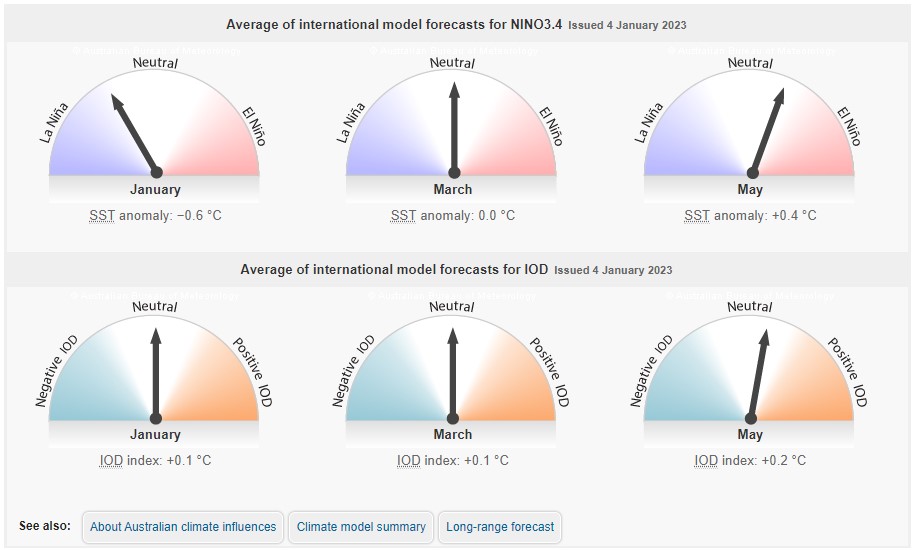 “Long-range forecasts suggest that tropical Pacific Ocean temperatures will continue to warm towards ENSO-neutral levels over the coming weeks, with some change in atmospheric patterns towards neutral levels also possible,” they add.