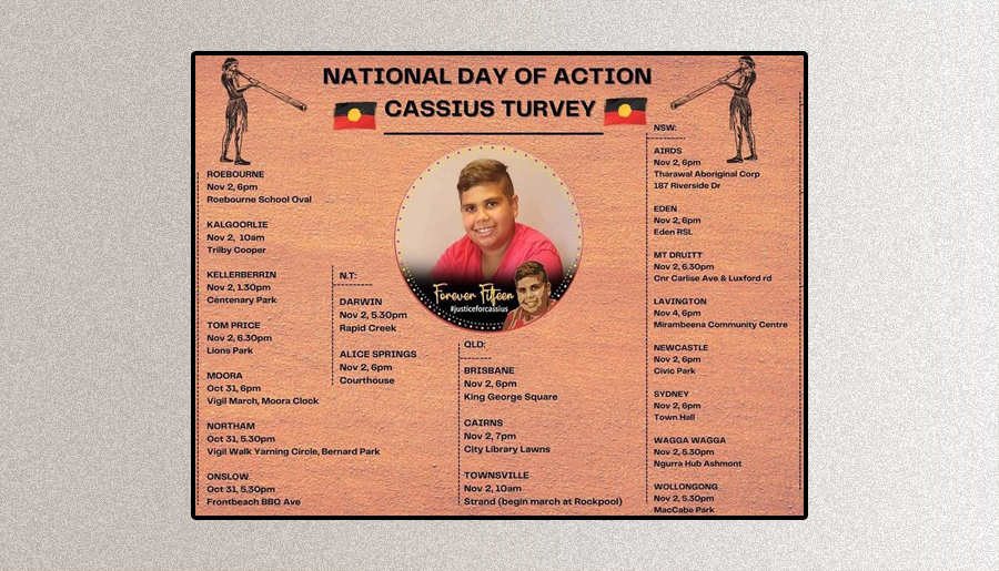 On October 13, Cassius Turvey was a 15-years-old Noongar Yamatji kid. He was walking home with his mates when he was brutally murdered.