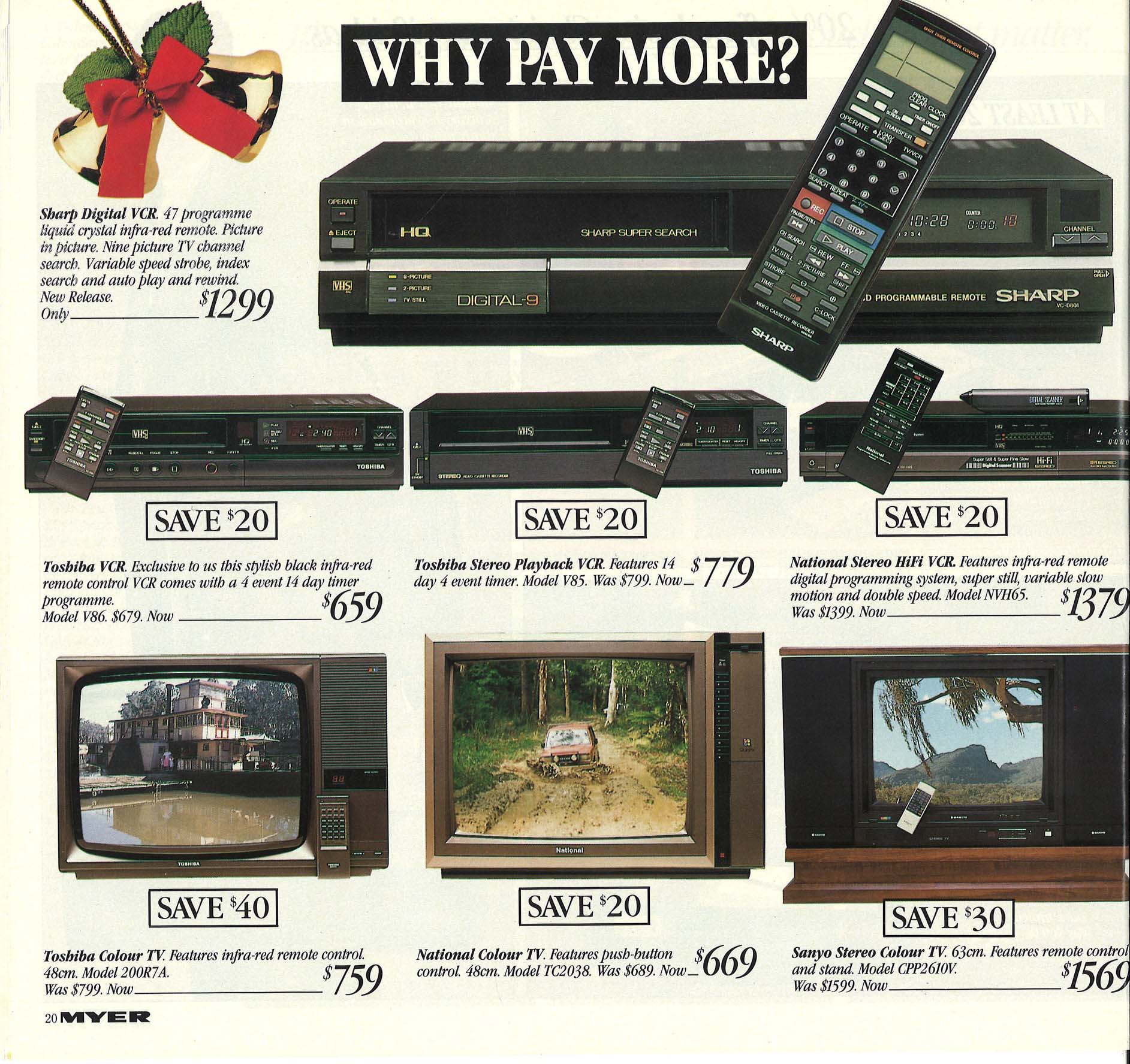 Speaking of bags, you’d need one full of cash to score a Sharp Digital VHS machine. These tape players could search for nine TV channels, had an autoplay feature, and would cost over $3300 if they were released today.
