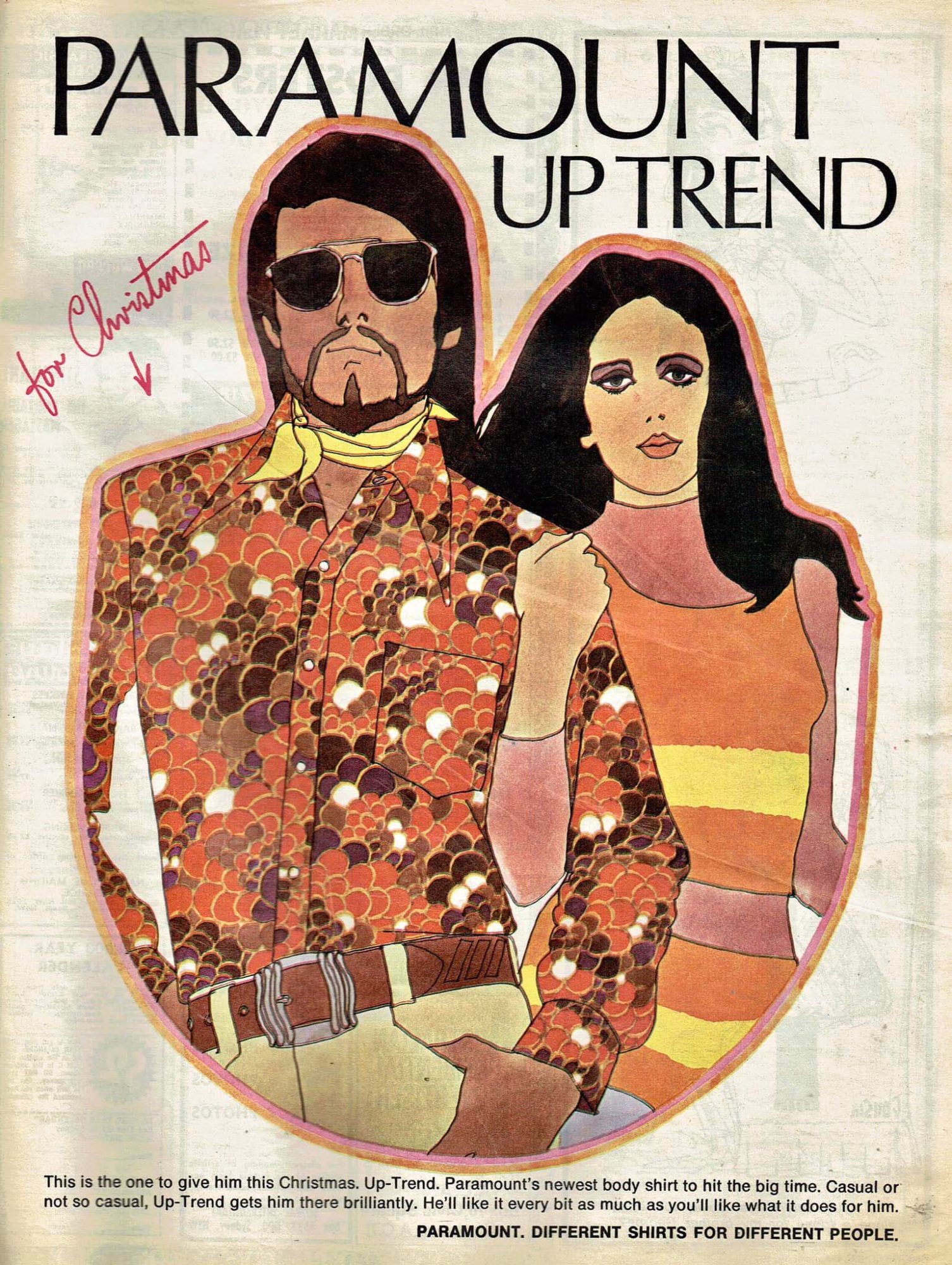 “This is the one to give him for Christmas,” said a 1971 People magazine ad. “Up-Trend. Paramount’s newest body shirt to hit the big time.”