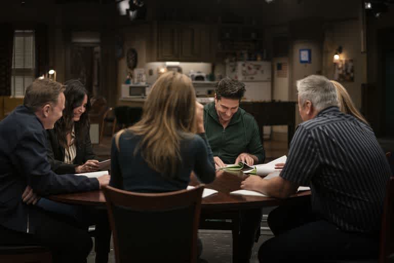Friends stars Jennifer Aniston, Courteney Cox, Lisa Kudrow, Matt LeBlanc, Matthew Perry, and David Schwimmer return to the iconic comedy’s original soundstage, Stage 24, on the Warner Bros. Studio lot in Burbank for a real-life unscripted celebration of the beloved show.