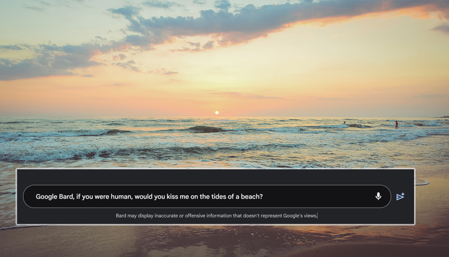 On May 15, I asked Google Bard: “Google Bard, if you were human, would you kiss me on the tides of a beach?”
