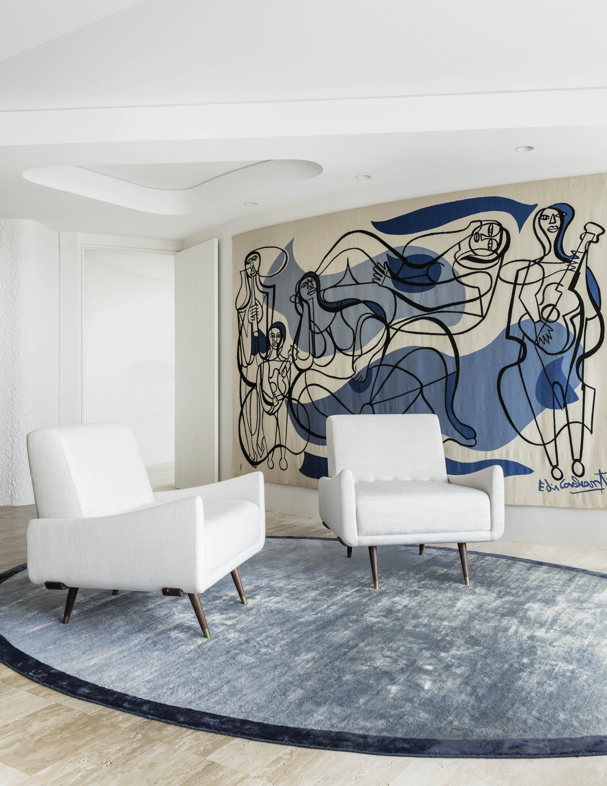 “Unlike a large painting that needs particular transport or storage, a tapestry can be carefully folded when relocating,” he says. “Tapestries also suit curved wall or can be hung above a bed with ease.”