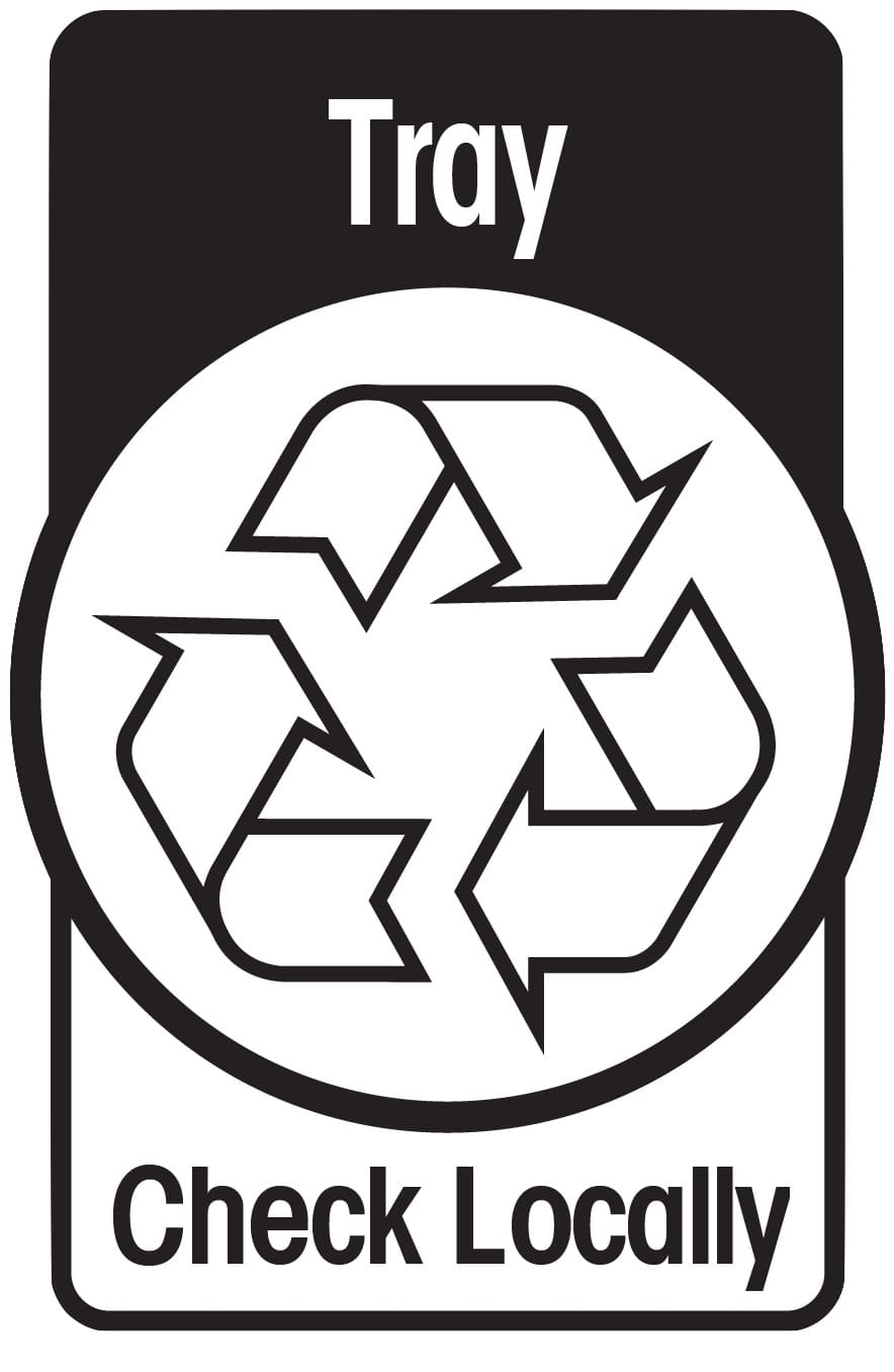 The coloured recycling symbol indicates that all parts of this product can be recycled in your kerbside bin.Â