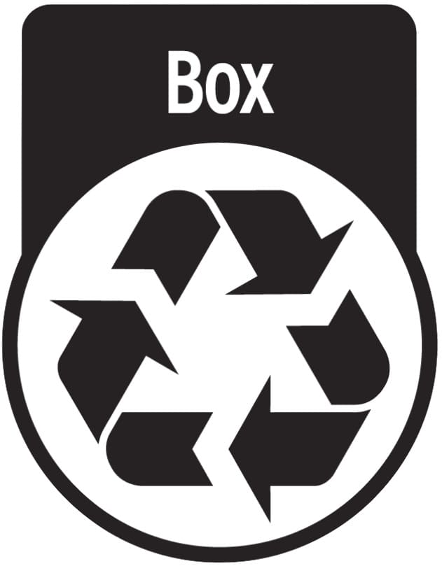 The coloured recycling symbol indicates that all parts of this product can be recycled in your kerbside bin.Â