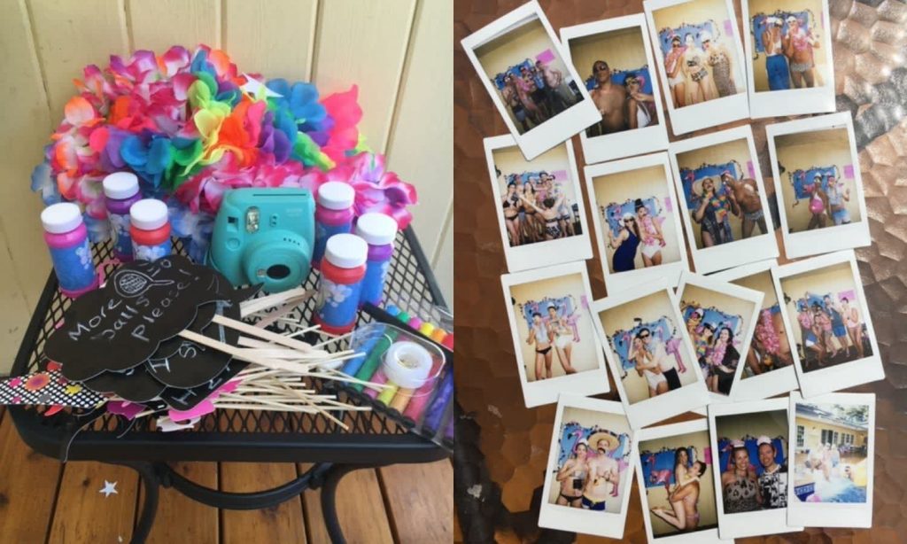 For another party (an epic, three-day event in the Hamptons for my 35th, which I swear I am still hungover from), I bought a little Fuji Instax Polaroid camera and set up a prop table so that my friends could take silly pictures to either keep or hang up on our photo line. These can then also be sent out to guests after the party with a thank-you note so they have a memento of the occasion.