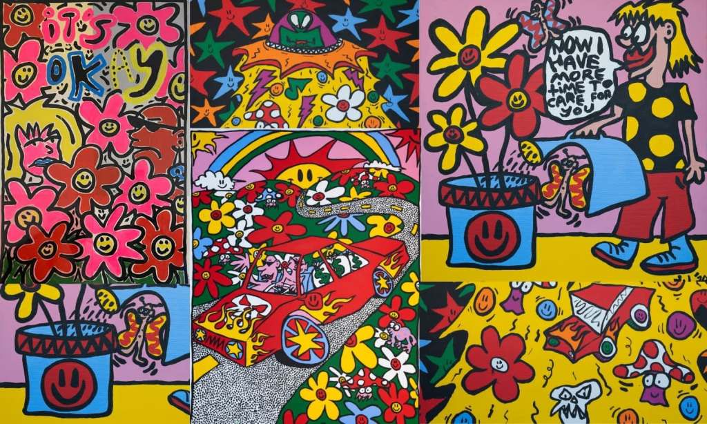 The show includes over two dozen vibrant paintings (with some new additions especially for Kambri) bursting colour and movement. Produced in a bold, animated style, the works transport the audience to multi-coloured worlds that explore what may be described as the joy of daily life, just without the usual dose of cynicism.