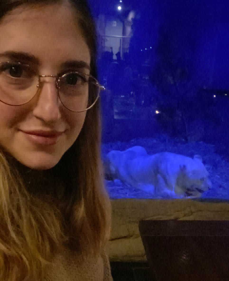 I tried to snap a picture of the white lions at dinner, but the room is dark (presumably so the lions aren’t too bothered) but you can see just how close they are!