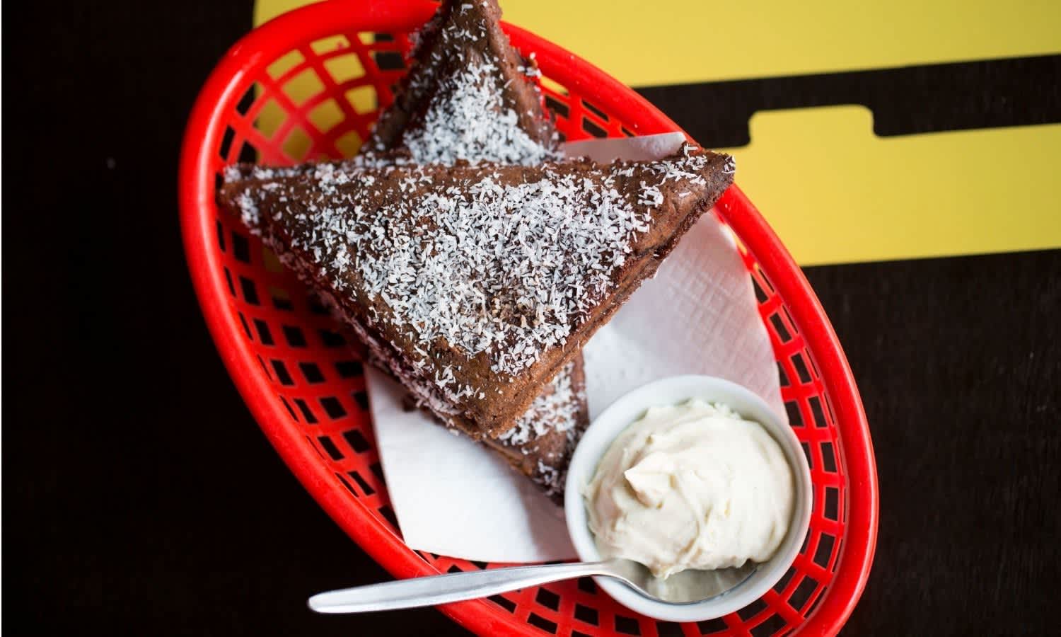 We know that a lamington toastie is hard to imagine, especially at a cocktail bar, but just trust us. It’s light but rich, it’s chocolate-y but not too rich, with just enough coconut and crisp. It’s to die for.