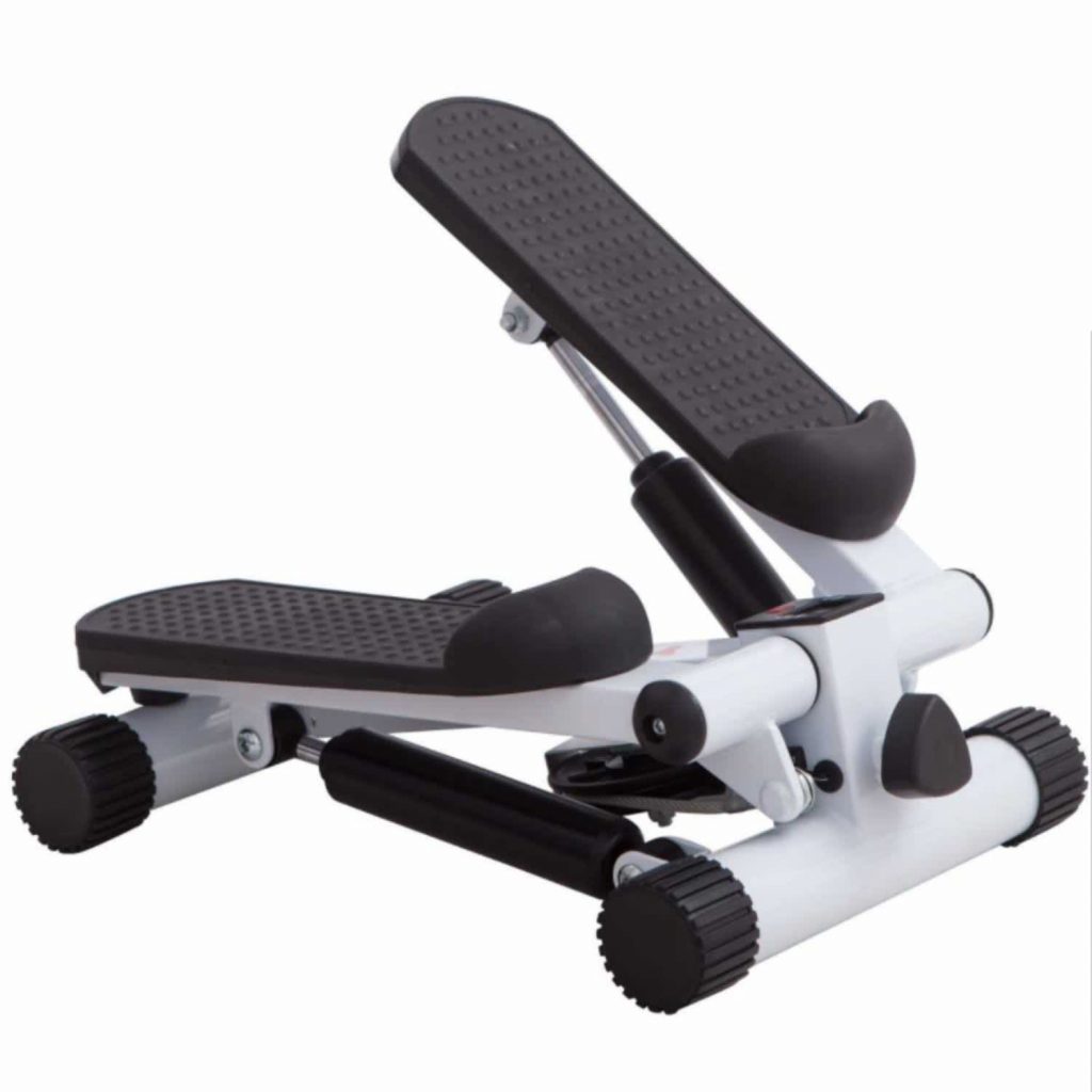 If you haven’t seen a mini stepper before, it’s a pretty self-explanatory piece of equipment. With two independent pedals that move up and down, the device allows you to engage in a repetitive motion of stepping and provides an aerobic workout that can help improve your cardiovascular health as well as your endurance.