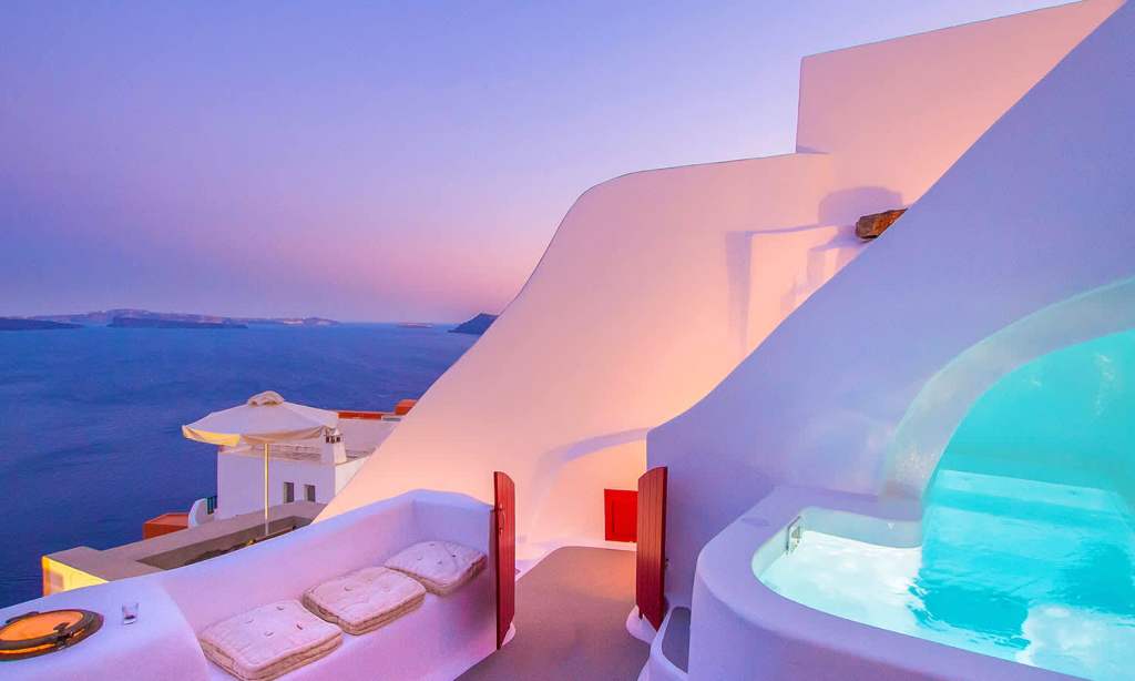Hector Cave House in Santorini has sat carved into the Caldera Cliff for more than 250 years. Originally a wine cellar, the now-one-bedroom suite welcomes travellers seeking a romantic escape. Ideal for one or two couples, the property has a lofted bed and beautiful balcony pool. This one doesn’t come cheap, starting from around $1,000 a night.