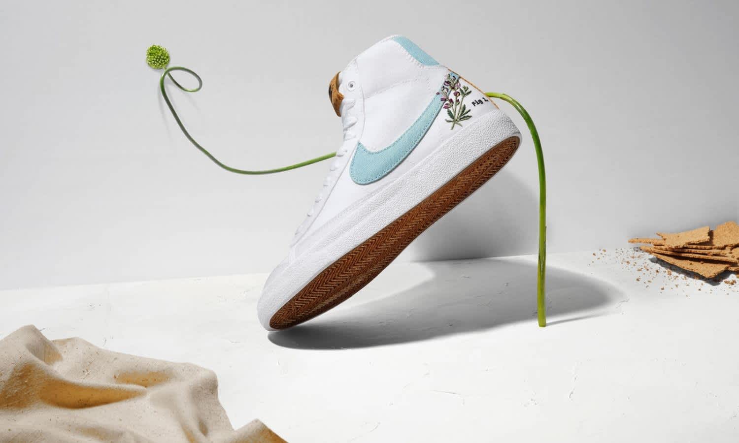 Each iconic style of the Nike Plant Cork Pack is made with 20% recycled content by weight, featuring cork and natural plant dyes. The story behind this shoe design is brought to life through botanical embroidery, scientific details and note about the country of origin.