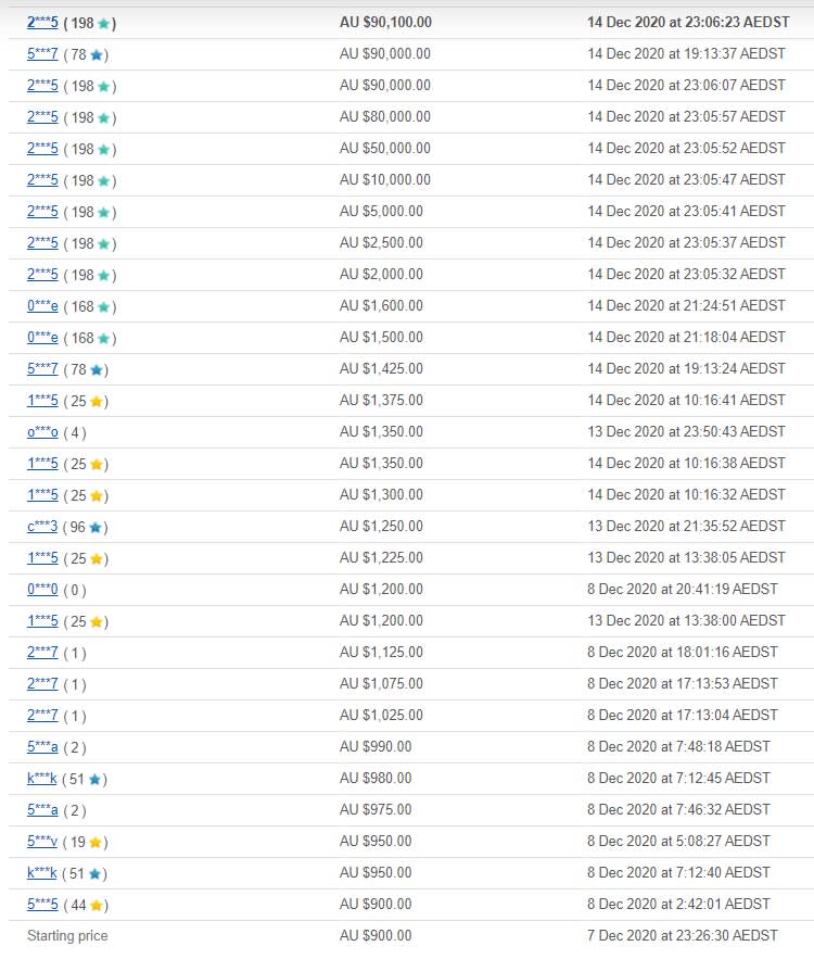 The image above shows the history of bidding on the PlayStation in question. You can see the seller initially listed the console with an extra controller for the actually quite reasonable price (all things considered) of $900. Up until the price reaches $1450, at least some of these bidders are legit people intending to pay. When you start seeing multiple bids from the same bidder, jumping up in massive increments very close together, that is likely a bot following its programming to trash the auction.