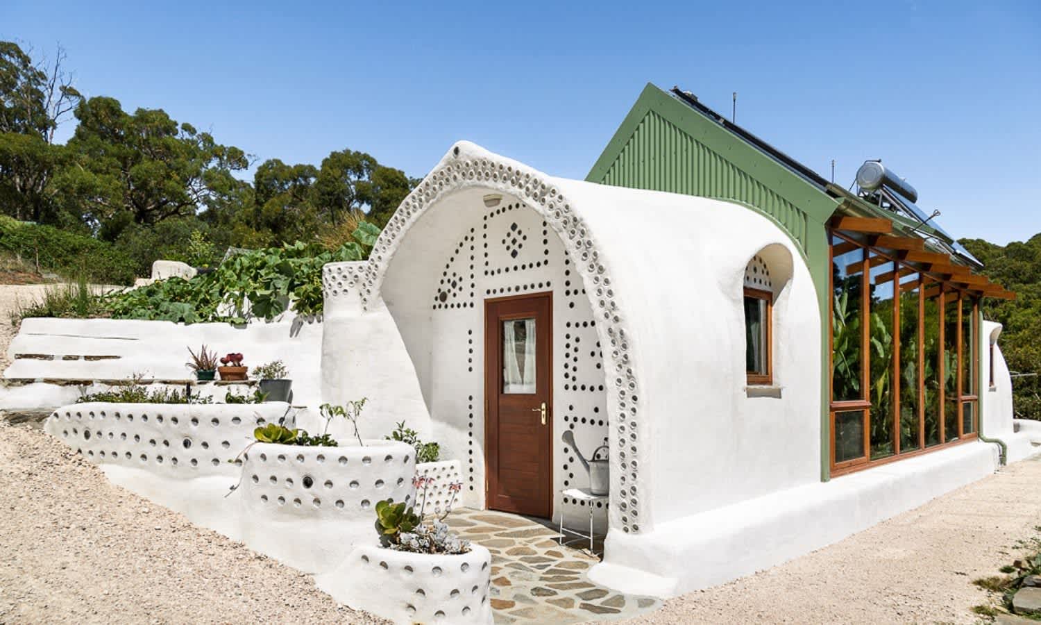 Taking sustainable accommodation to the next level, this ecological bed and breakfast is Australia’s first council-approved Earthship. Ticking every box for solar, water and energy efficiency, the apartment is made from a variety of natural and recycled materials, including car tyres filled and rendered with soil and an incredible beer and wine bottle brick wall. A veggie breakfast is included.