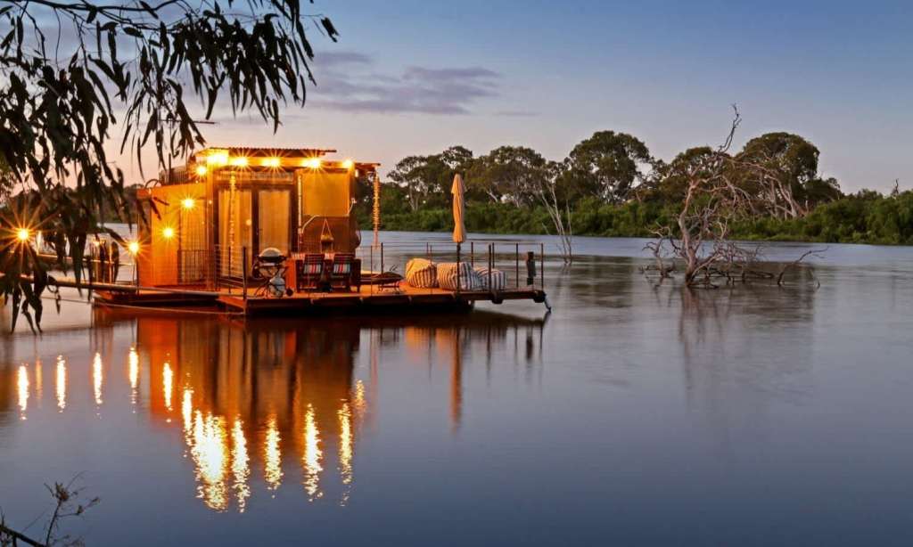The Cube on the banks of the Murray River is one of the most immersive ways to experience life on the river, just outside Murray Bridge. An hour’s drive away from Adelaide, this dreamy stay sleeps two people with a queen bed, ensuite and kitchenette complete with breakfast supplies, making it the perfect place to base yourself for adventures along the river. Kick back on a sun lounge on the deck and watch as boats cruise by, take to the water in your very own kayak or cosy up by the fire pit with a glass of red in hand.