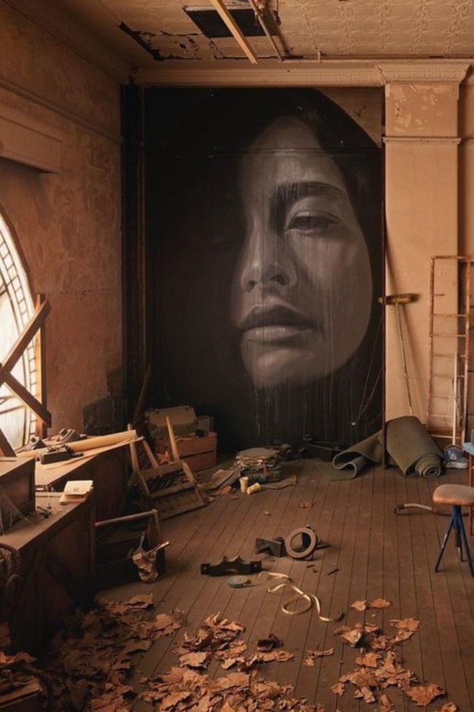 Rone, as an artist, has become known for his fascination with decay and the beauty that lies within something that has been abandoned. Pairing vignettes of aesthetic abandonment with large-scale portraiture of female faces, his signature style is impactful as it is controversial. While there’s no question about their visual impactful, young art lovers, writers and critics on the internet have been questioning the behind these female faces, and whether they have meaning at all.