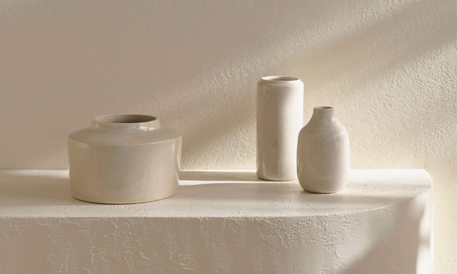 For a chic laundry situation, buy either a seagrass basket, in sizes small or medium, or a cotton basket that, conveniently, comes with a handle. Ceramic vases and candles offer personalised touches. Sleep easy in waffle co-ords, plush robes and cotton sleep sets in gingham and Chambray.