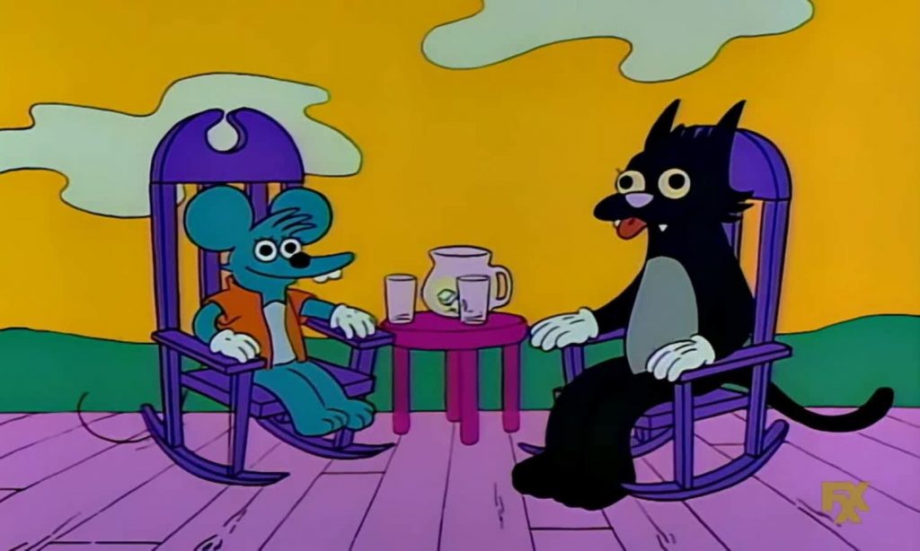 Of course, in the episode Itchy & Scratchy & Marge, the Simpsons matriarch takes on that exact violence shown in the cartoons, resulting in the cat and mouse become docile and effusive with one another.