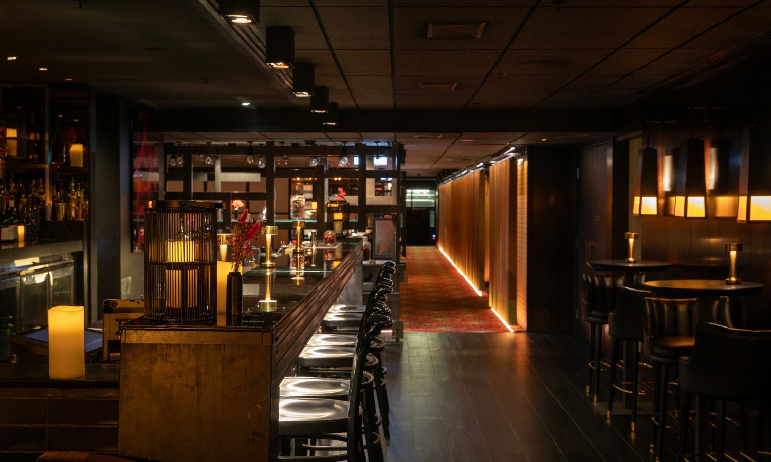 Eastern references are evident in artwork, and the moody sparkle of candles and lantern-style floor lamps that trace the corridor entrance. Small booths and tables for two offer intimacy, while high bar stools let you easily watch the theatrical cocktail-making, and easily dine or drink on your own.