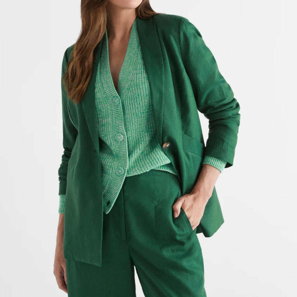 Opt for neutral colours like black, navy, or camel for maximum versatility. They even come in a variety of fabrics, like cosy ponte or the more-relaxed linen, to keep you sharp no matter the weather.