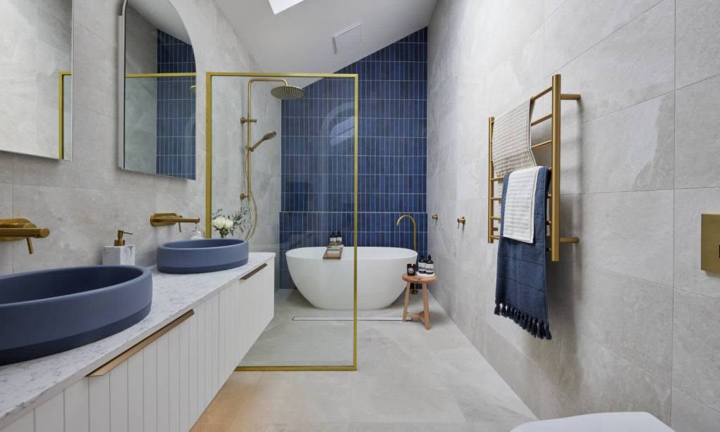 Kirsty and Jesse’s Hampton themed bathroom was a breath of fresh air, with the judges falling in love with the tap selection. However, they were criticised for their shower screen which was far too low and the bath tap which was loose.