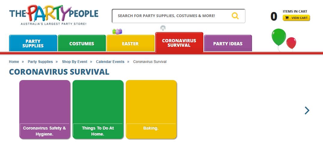 In response to the COVID-19 pandemic, The Party People introduced a coronavirus survival guide on its site, which includes ideas and product suggestions for entertaining activities you can do in isolation.