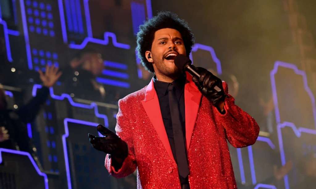 Appearing in a red suit, black gloves and sporting a fake bloodied nose with a bandage, the singer performed the hits from his upcoming album After Hours, which will be released on March 20.