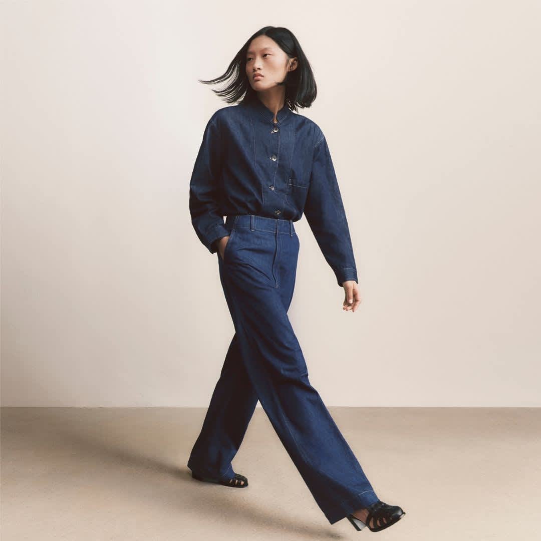 Essential, functional, and durable pieces are designed with practicality and utility; simple styles are rooted in archetypal men’s shapes. Fabrics are focused on wovens that age well like classic cotton poplin and twill, and 3D knits feature a fresh linen-cotton blend. The Uniqlo U T-shirt comes in customer-favourite stripes and a new boat neck. Work pants are in a complementary earthy tone. A trucker jacket and regular-fit jeans create a tone-on-tone look.