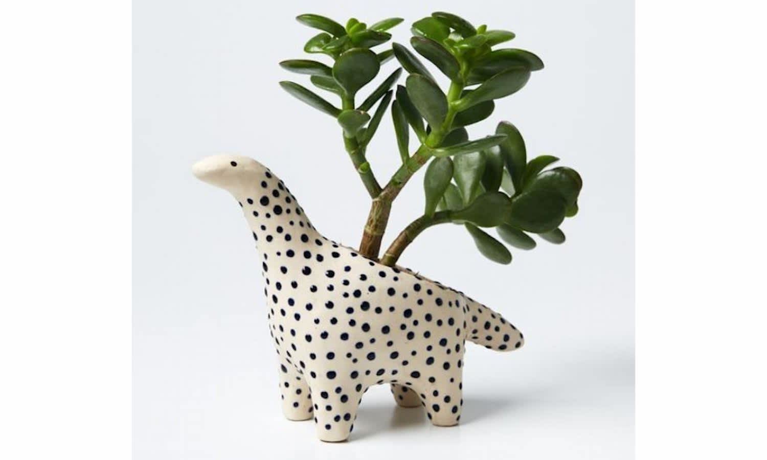 Your best friend can use this spotted dinosaur planter for succulents or cacti.