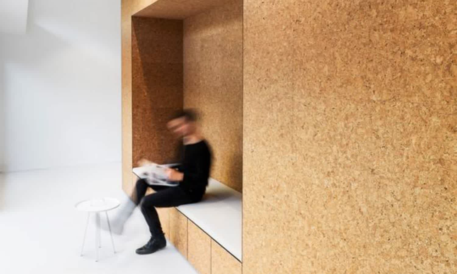 The fun part about building a capsule home is re-imaging ways to repurpose materials. Camilla shares an example of an inventive design using cork panels in an office space. This can be used in a similar way in a capsule-style home, as a bedhead or in a small office nook, where you can pin your to-do list to your custom-built wall.