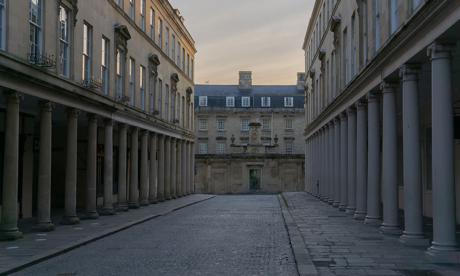 With cobblestone paving and colonnades that flank the road, Bath Street in Bath makes for a picturesque backdrop to a number of the street scenes in Bridgerton.